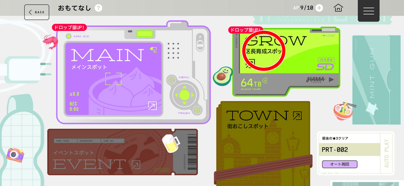 名所製作ガチャを引くための「名所部品」は主に「名所部品スポット」ステージで入手します。