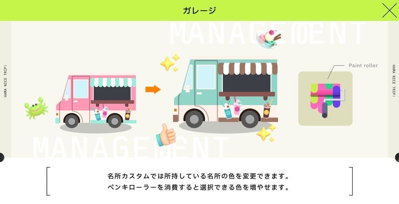 入手した名所は「ペンキローラー」を消費することでカスタマイズすることができます。