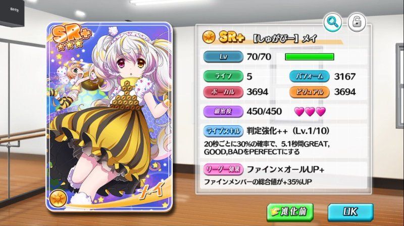 | ライブスキル | 判定強化++ (Lv.1/10) |