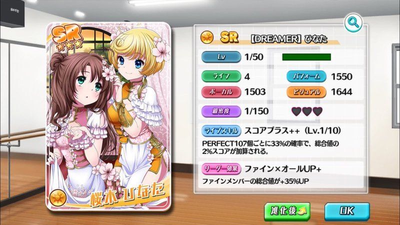 | ライフ | ボーカル | パフォーム | ビジュアル | 総合値 |