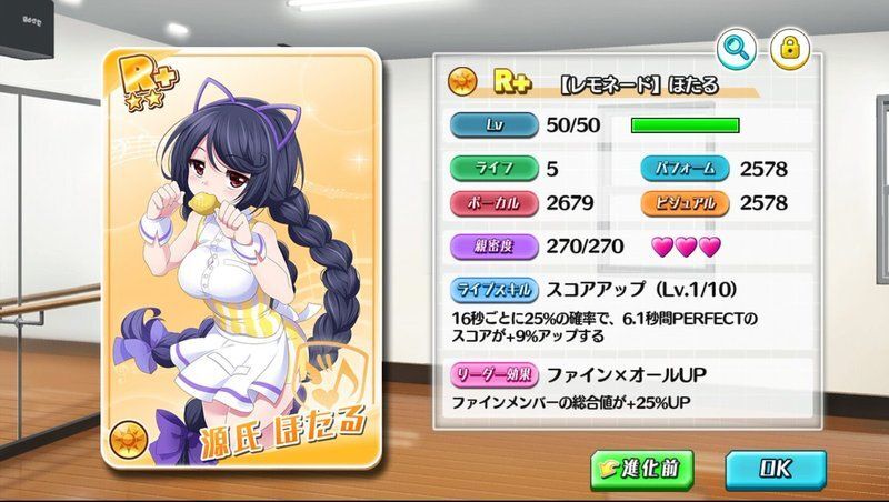 | ライフ | ボーカル | パフォーム | ビジュアル | 総合値 |