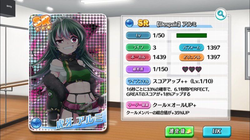 | ライフ | ボーカル | パフォーム | ビジュアル | 総合値 |