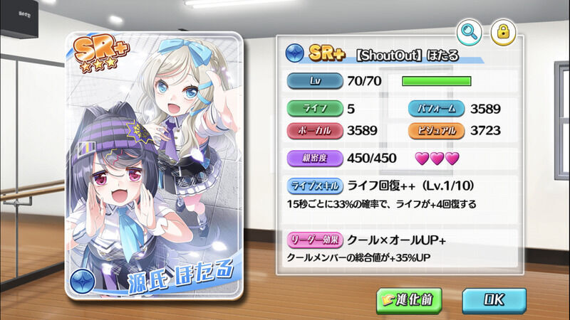 | ライブスキル | ライフ回復++ (Lv.1/10) |