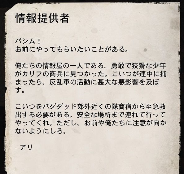 | ・隊商宿の外で情報屋と話す ・スキルポイント+2 | |