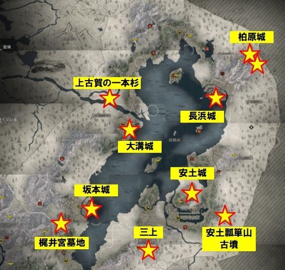 | 坂本城:侍大将x3 至高の宝x1 家紋x1 | |