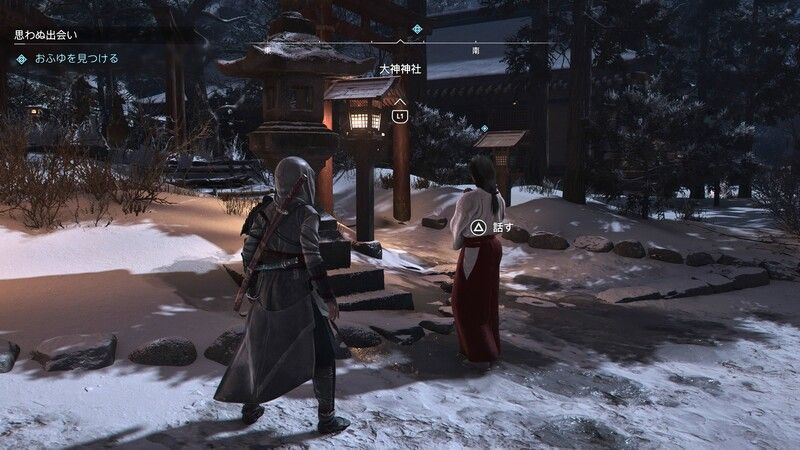 | ② | おふゆについて行き、神社に向かう |