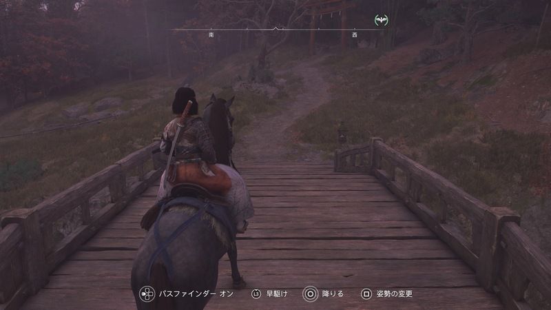 - パスファインダーがONの状態で「道なりに進む」を選べば目的地まで自動で馬が動いてくれるので画面見てなくても勝手に進んでくれます