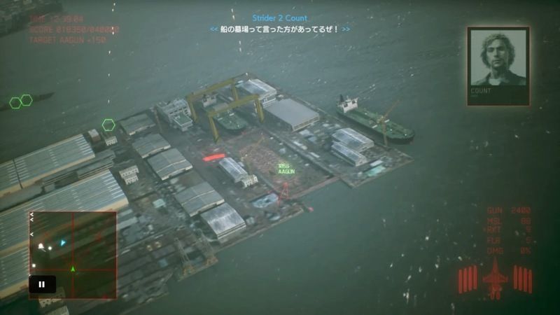 高ポイント目標が多いのと補給を得やすいのでスコア自体は稼ぎやすいミッションとなっている……が、主に敵艦とイージスアショアによるキャンペーンとはまるで別物のような凄まじい弾幕が待ち構えているのでボーッと飛んでるとがりがり耐久値が削られていく。PLSLや爆弾系で出撃するなら自動消火装置を装備していると心強い。対艦ミサイルは射程ギリギリから撃つよう心がけよう。