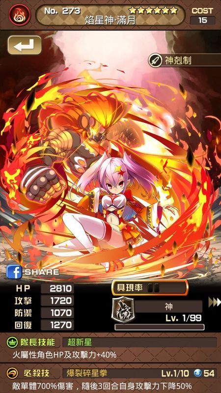 | 紋章王とは別の括りのキャラである理由は、実装されたのがもっとも初期であるため。なので、紋章王と比べても、他の期間限定キャラと比べても大人しい能力値の持ち主。使う場合は、リーダースキルで「減攻状態」を無効化する重生・菲力絲F(重生・フェリスF)が最適。彼女以外だと、翼人少女・希比(翼人・セリヒ)や桃樂絲・蓋爾(ドロシー)等「減攻状態」を解除できるキャラと一緒に使うべきである。ついでに「減攻状態」で特別大きなマイナス補正がかかる亞森・羅蘋(アルセーヌ・ルパン)も入れると良い。また、「攻撃力上昇」のスキルを持つキャラや、地形スキル天地で攻撃力を出来るだけ上げる必要もある。 イラストは『Hong』氏。異星神・新月も氏が手掛けている。 2018年1月16日あたりのアップデートにて、スキルの攻撃力が700%→800%に変更。 編集中!コメント募集中! 旧日本版でもロード画面は、本家と同じものを使っているため、入手不可能であるこのキャラの姿だけは確認できる。 |
