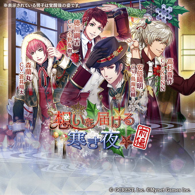 | 排名 | ![]() | 想いを届ける寒き夜~前編 前篇池五:安倍 晴明 共通池四:森 蘭丸 共通肝五:德川 綱吉 前篇排五:高杉 晉作 | |