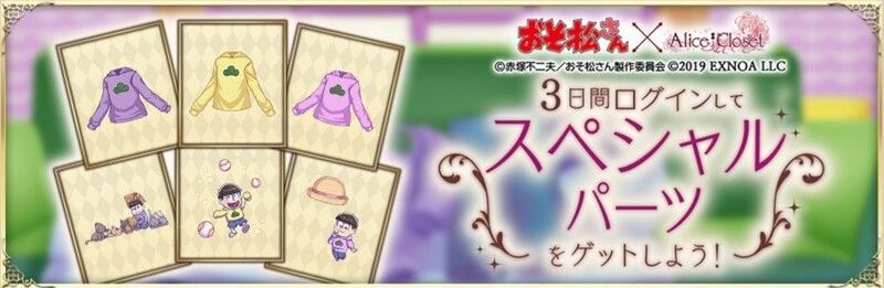 | 3/4(金)3:00 ~3/12(土)2:59 |  おそ松さんコラボ記念 スペシャルログインボーナス |