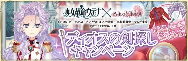 | 1/20(木)3:00 ~2/3(木)14:29 |  少女革命ウテナコラボ ディオスの剣探しキャンペーン |