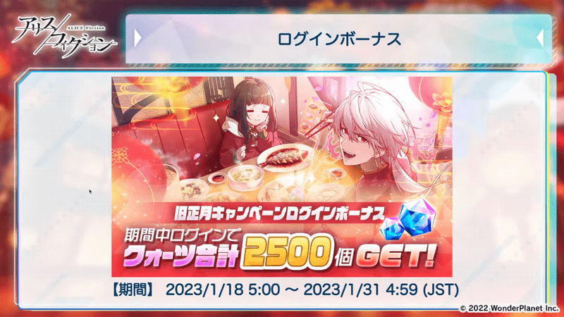 旧正月カウントダウンログインボーナス