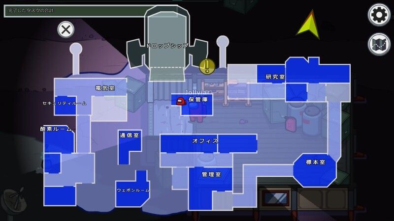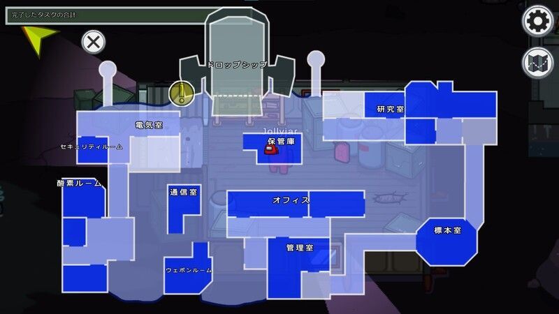 開始地点であるカフェテリアから下にある「保管庫」にタスクがあり、追加で発生するタスクは「上部エンジン」と「下部エンジン」で発生します。