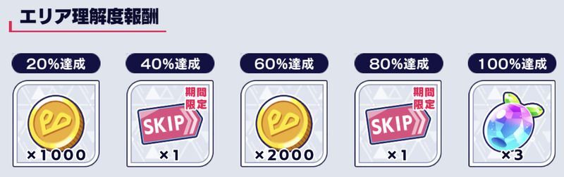 イベントのエリア理解度報酬として、調査SKIPチケット(期間限定)が入手できます。