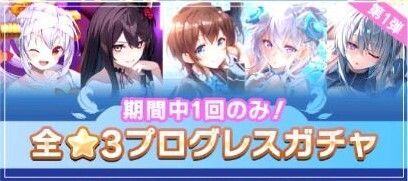 | 1回限定で★3プログレスを1体以上確定で獲得することができます。 |