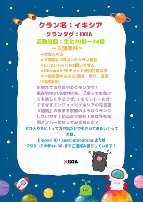 ※20歳以上の方でお願いします!クランタグもつけてもらいます メンバー増えてきてます! 気になった方まずはご連絡ください discord→