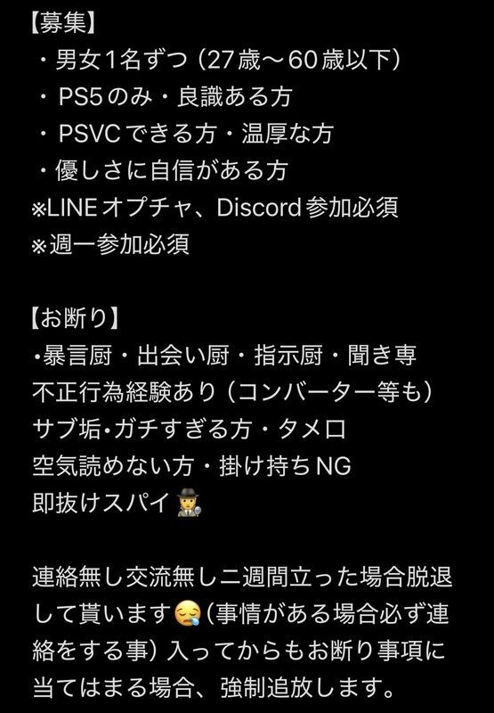 参加頻度は週3日以上できる方(来れない日は連絡いただければOK) VC discord 平日20時から0時 休日20時から2時くらい