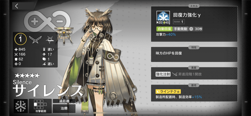 サイレンスは全ての医療オペレーターの中でも優秀な単体回復性能を持っており、基本的にはこのキャラを選んでおいて間違いはありません。