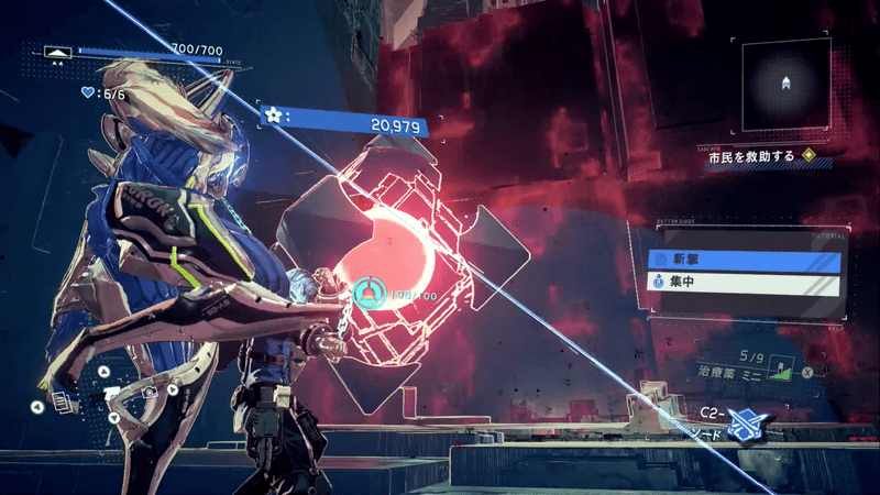 |  Lで「構え」ZRで「斬撃」を放ち、怪電波を分断しよう。 | |