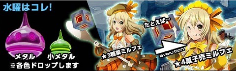 | 水曜クエスト上級 | 25 | 小メタルR,G(★2)、マトリョーシカ(★2)、メタルB,P(★4) |