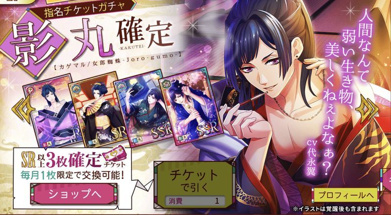 指名チケットガチャ〜影丸確定〜のシミュレーターです。