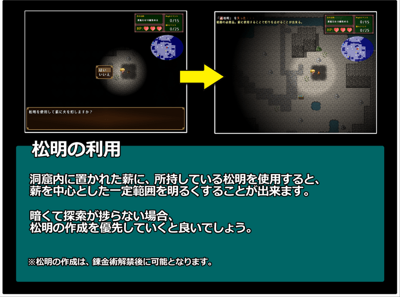松明で 火を照らしていきます