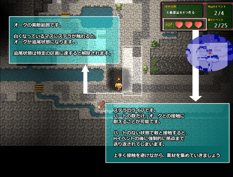 オークさんとぶつかると ハートが減ります