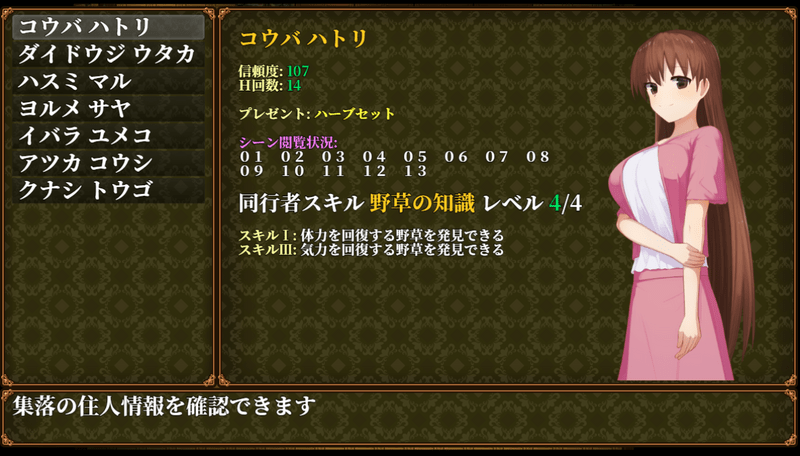 | 住民名 | 有効プレゼント | 同行者スキル |