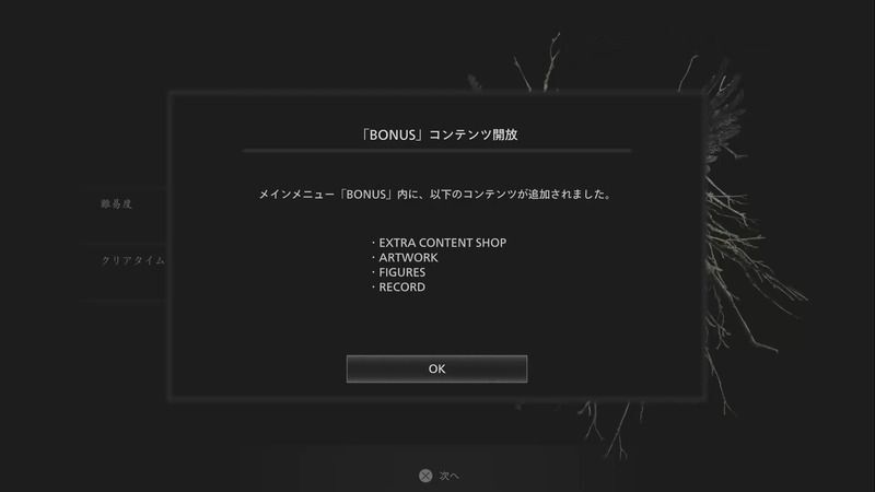| ・難易度「Village of Shadows」追加 (NEW GAME時に選択可能) ・「BONUS」コンテンツ開放 ・クリアデータ周回 |