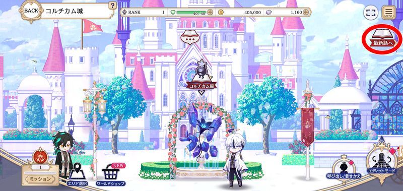メインストーリーの次はどこで発生するか分からなくなった場合は右上の「最新話へ」で、どのエリアにいてもすぐに次に行くべき場所に遷移することができます。