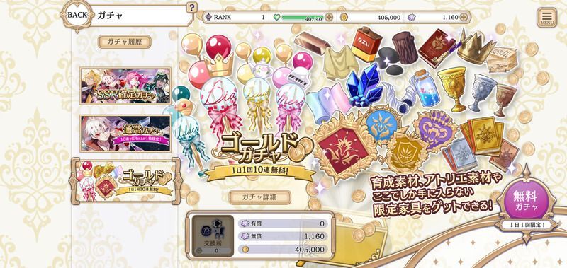 毎日無料でゴールドガチャを回すことができます。家具を集めてデコレーションしましょう。