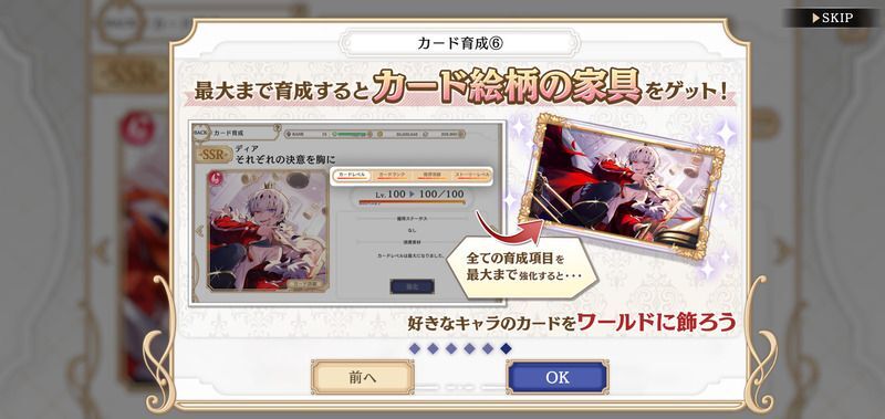 全ての育成項目を最大まで強化するとカード絵柄の家具を獲得することができます。
