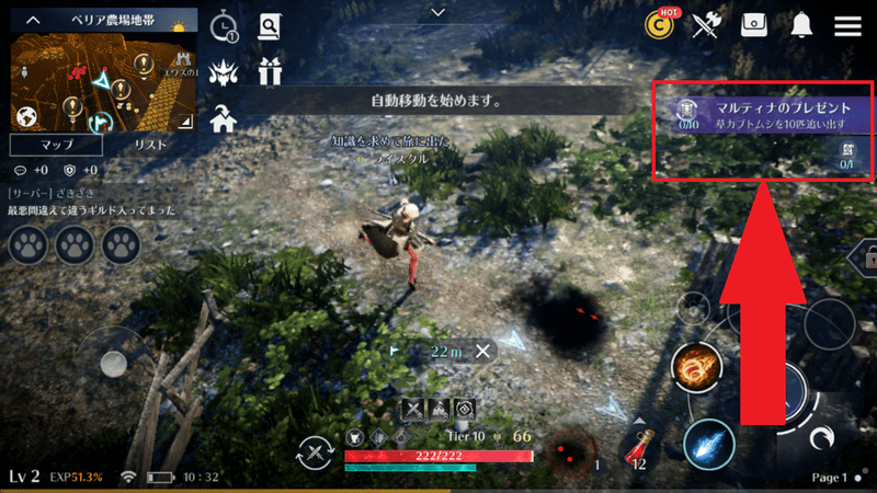 右上の任務バナーをタップすることで、自動で目的地まで連れて行ってくれるのでサクサク進めていきたい方は自動移動を活用しましょう。