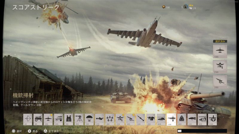 ヘビーマシンガン掃射と航空機からのロケット攻撃を行う2機の機銃掃射機。必要スコアは5000、クールダウンは30秒。