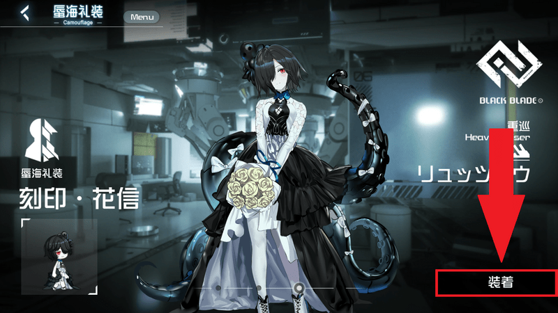 スキンの選択画面が出てくるので、誓約礼装のスキンまで移動し、装着をタップします(忘れがち)。