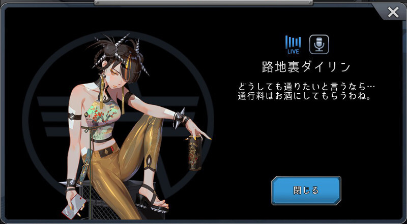 - Live2Dスキン「月下美人 ダイリン」は、テクラボ『第三次 アグライアの補給』(19.07/03~07/17)限定。