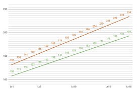 | 体力 | 116/218 | 120/222 | 124/226 | 128/230 |