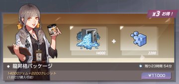 - ショップの「ジェム金庫(14000ジェム)」に2400クレジットがついたパッケージ.