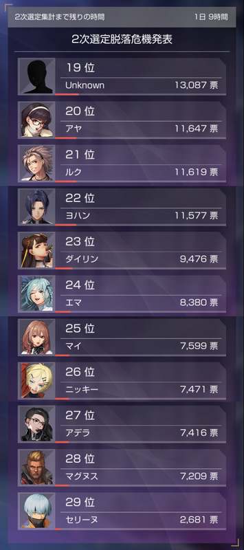 | 16 | ![]() エヴァ | 一次 | 15位 | ![]() |