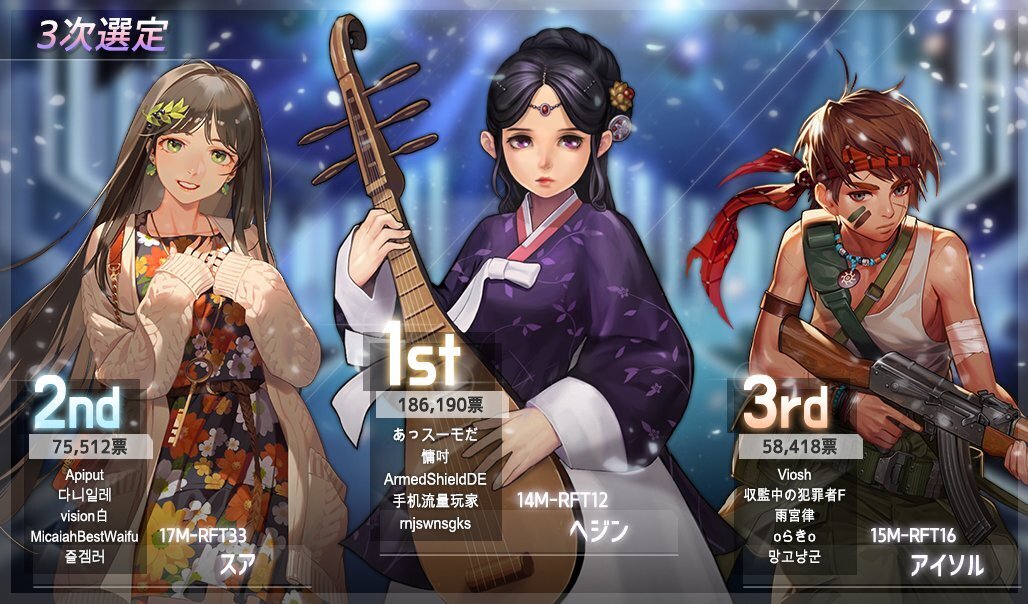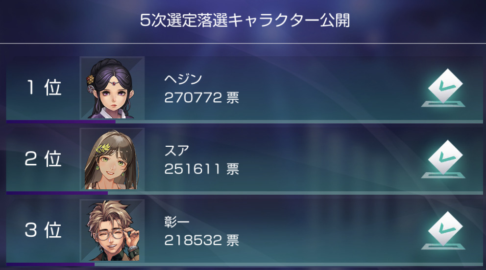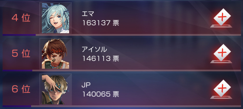 - 各選定ごとの投票数で上位に入ると、限定特典や財貨が貰える.