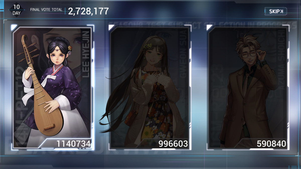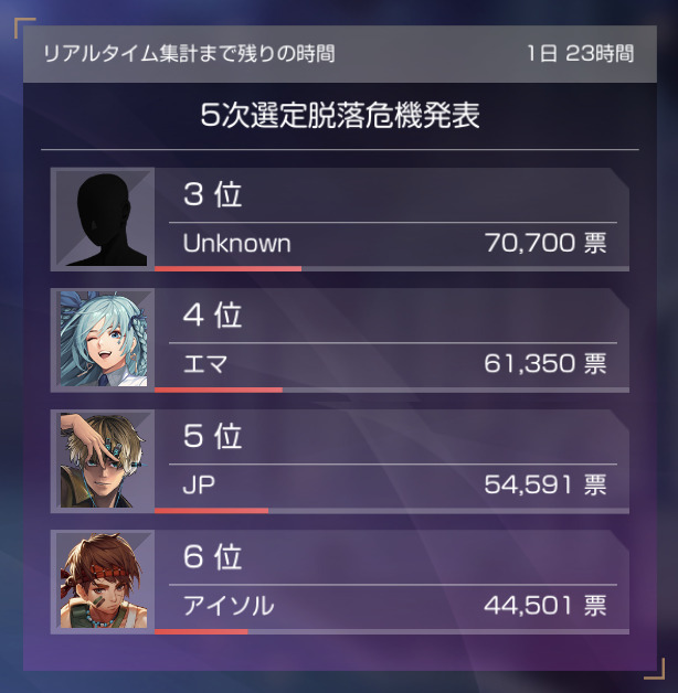 - 実験体が獲得した投票数は、各選定ごとにリセットされる.