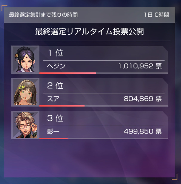 - 各投票開始時間は0:00(初日除く)、終了時間は24:00(日本時間)