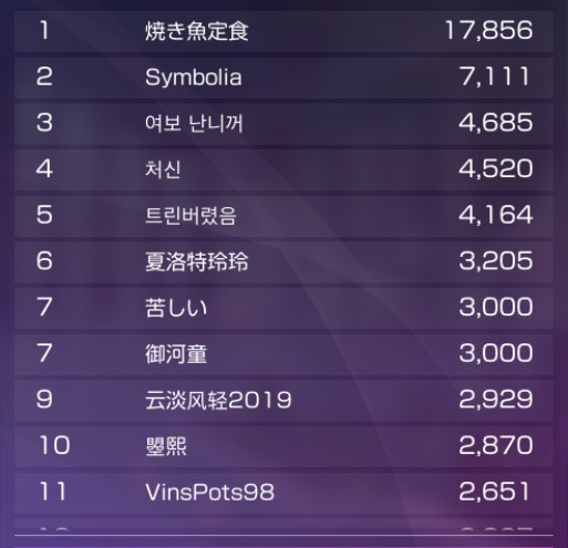 | 20 | ![]() アヤ | 一次 | 7位 | ![]() |