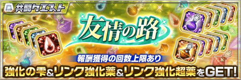 様々な育成アイテムとフレンドポイントが入手できる共闘クエスト『友情の路』が開催されます。