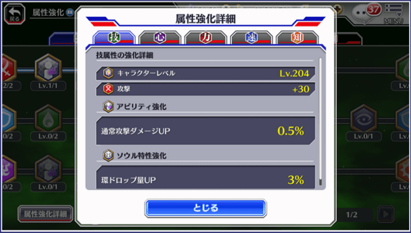 アトリビュートツリーを強化することで、強化したページと同じ属性のキャラクターを成長させることができます。