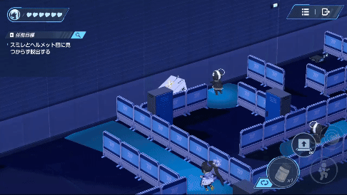 | ① | MEMO/みんなで一緒に リオと会話する リオと会話する(任意) マップからLOCATION 「展示ブース」に移動 光る床に移動 スミレと会話し脱出ミッション開始 リオと会話し終了 リオと会話(任意) |