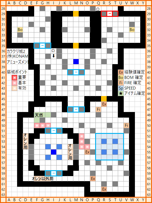 - ベース周辺通路は幅2マスでハードブロック無し。ブロッカーでの築城は非常に困難。