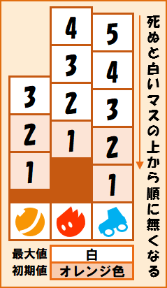 - 他に自キャラが居るマスに依存して、攻撃範囲が決まるスキルがある。(例:エメラのαブラスト)
