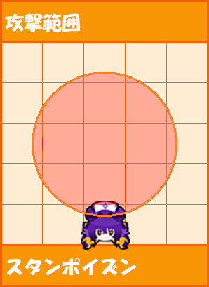 | 2 | 前2マスに 半径1.7マスの 円形*3 | なし (弱スタン) | 6秒 |
